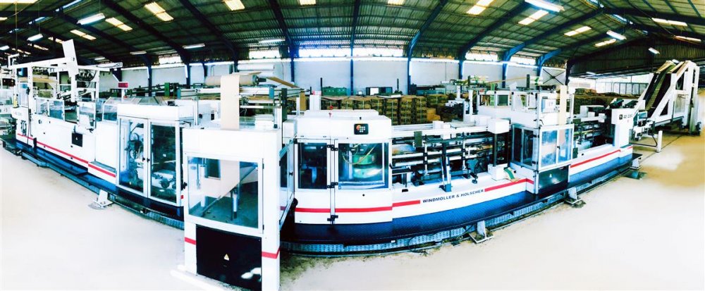 | Note | Installed mid 2008 2-drum delivery Two colors patch printer Venthole perforator Tube end slitting unit Intermediate pressing station Bottom patch unit Valve - Cutting length: 8 - 25 cm - Length: 8 - 24 cm - Valve width: 10 - 30 cm Bottom patch - Length: 18 - 45 cm - Width: 8 - 18 cm Output : Sacks - 300 sacks/min - 18 000 sacks/hour 2-drums delivery packets - 25 packages/min MACHINE EQUIPMENT: - Rotary feeder - Tube aligner - Conveyor - Creasing station - Venthole perforation - Slitting unit - Sucker station - Spreader assembly - Open bottom check - Valve unit - Valve patch unwinders - Bottom creasing station - Bottom pasting station - Control PC - Bottom closing station - Folded edges pressing station - Bottom patch unwinders - 2 colors bottom patch printing unit - Foldover unit - Turning station - Reject gate - Transfer belt - 2-Drum delivery - Counting station - Packet forming station Ubcuding two W&H TRANSYSTEMS 9350 |
