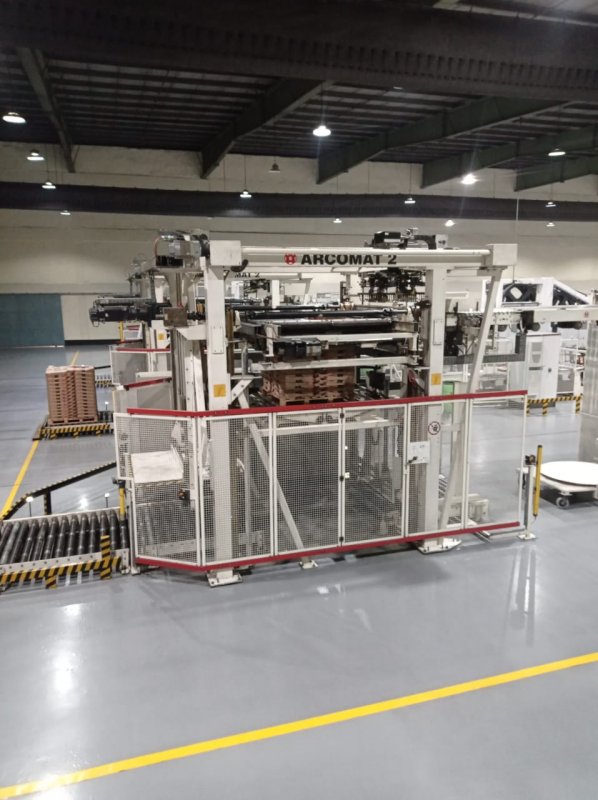 - TUBER Brand: W&H Model: AM 2185 Year: 2006 Plies 4 Stepped end and flush cut Min-max tube width: 260 – 500 mm Min tube length stepped end: 480 mm Min-max tube length flush cut: 450 – 850 mm Max paper roll width: 1030 mm Max paper roll diameter: 1350 mm Number of unwind stands: min 4 Core i.d.: 76 mm Output: 350 tubes/min. The owner makes 250 tubes/min. Max web speed: 300 m/min Photocell for PCS Rated power: approx. 80 kW (without printer) Power characteristics: 400V, 50Hz without neutral Required space: (4-ply machine): according to layout plan BOTTOMER ( with valve unit ) Brand: W&H Model: AD 2390 Year: 2006 Type of valve: Two valve types are produced by the owner – flat and tubular. The valve with PE liner is not possible to produce Min-max tube lengths: 540 -940 mm Min-max tube width: 320 – 550 mm Min-max sack length (stepped end and flush cut): 410 – 740 mm Min-max sack width: 320 – 550 mm Bottom center distance: 320 – 600 mm Bottom : For stepped-end sacks: 90 – 140 mm (valid for 3-ply stepped end sack) For flush-cut sacks: 90 – 140 mm Min-max valve length: 100 – 220 mm Min-max valve cut-off length: 100 – 220 mm Min-max roll width: 100 – 300 mm There is a bottom patch but the owner doesn’t use because not requirement by the customers With printer for bottom patch 2 colors Printing cylinders: 2×280, 2×330, 2×380, 2×420, 2×520 mm Bottom cap: (option available against extra charge) Min-max cut-off length: 180 – 450 mm Min-max roll width: 80 – 180 mm Output: with 2-drum delivery maximum 300 sacks/min (depending on raw material quality, product design and operator qualification).The owner makes 230 sacks/min Packet frequency: with 2-drum delivery maximum 25 sacks/min Capacity: up to 200.000 sacks/per day, 60 million sacks/per year Glue preparation plant is not included Required space: according to the layout plan Power consumption: 35-40 kW Rated output of drive: 25 kW Connected load: 400 V Weight: without bottom cap unit ca. 17.000 kg,with bottom cap unit: ca. 20.000 kg IN -LINE PRINTER Brand: W&H Model: Flexa 820 Year: 2006 4 color; currently equipped with 2 printing decks Web width: 1370 mm Printing width: 1320 mm Print repeat range: 450 – 1500 mm Output speed when equipped with fountain roller inking system: max. 250 m/min (depending on job specification and print related factors) Materials: paper 40 – 250 gsm Water based inks Printing cylinders: 8×720, 7×730, 8×740, 7×750, 7×760 mm Required space: per W&H installation drawing Power consumption: 50 Hz 3×400 volts, without neutral W&H Transystem 1 with software SIMATIC S7-300 of SIEMENS PALLETIZER Brand: W&H Model: Arcomat 2 Year: 2006 Min-max sacks length: 250 – 1400 mm Min-max sacks width: 180-750 mm Pallet dimensions (per W&H-pallets specification): Min. 600×750 mm, max. 1400×1500 mm Min-max empty pallet height: 100 – 180 mm Palletizing surface: min 600×600 mm, max 1500×1600 mm Max packet height: not compressed 180 mm, compressed 80 mm Max empty pallet stack height: 1400 mm Max stacking height: 2500 mm Max stack weight: 1500 kg Min-max working range of pallet press: 850 – 2500 mm Stack pressing force: appr. N 10.000 Height of outfeed conveyor: 300 mm Max output: 25 packets/min (The indicated output relates to a maximum packet height of 8 cm, to a maximum sack width of 50 cm and a minimum of 6 packets per layer on the slide table. Output may be reduced when handling products differing from the above specifications, when handling bags with smooth surfaces, or when pallets are changed) Connected load: 43 kWa