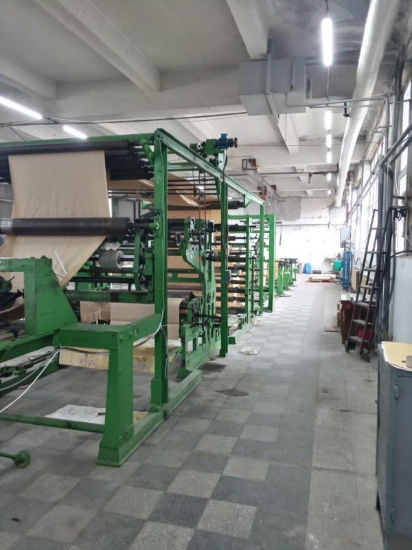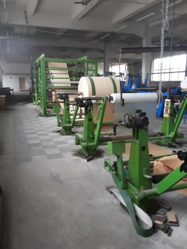 - Max. Reel width - 160 cm 3 layer stand with krane system. 1 web guide unit with fife system. 3 cross glue unit for 3 ply 1 microperforation unit - can drill paper tube for air circulation, (drilling apparatus) 1 print unit with 2 colors 1 glue unit with folding unit 1 cuting unit - straight cutting 1 new photocell system - 2020 1 new system for digitally cutting tubes. The size changed by touch screen display. On the machine is installed 3 unwinders.