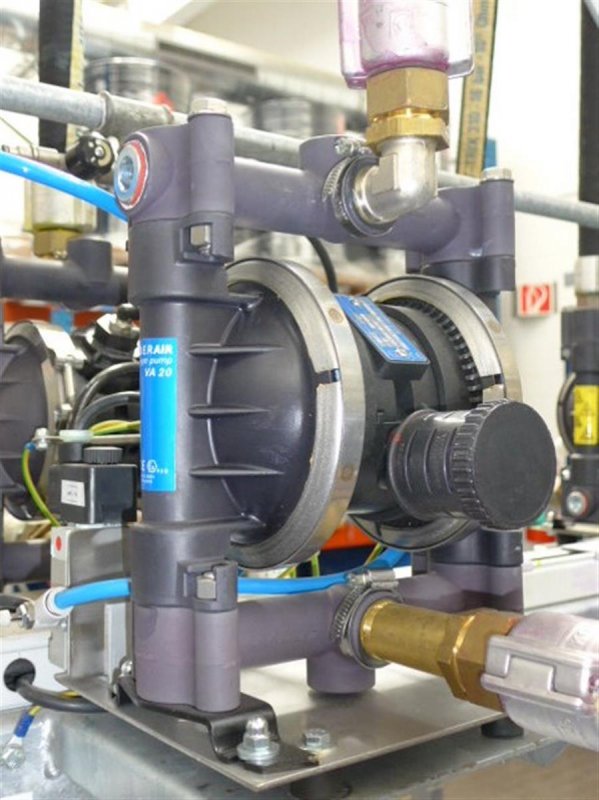 - Includes: 1x 1000L Barrel for color additive 24 x 200 L Barrel for glue 3 x solvent 8x 200 L Tanks for laminate glue components Total 36 BASE Connected with an automatic dipensing system FS 2015 K36/36 CALIPSO PRO (Color and liquid processing software) - is used for running FÜLL – dispensing centers and allows for processing of the necessary data for storage, dispensing and handling of raw materials and completed mixtures. CALIPSOPRO consists of three program parts CALIPSOProGUI installed on a workplace PC (office computer). This PC is equipped with the necessary input and output equipment (keyboard, mouse, monitor and printer). It is connected to the server PC in the switch cabinet. It can be optionally integrated into a network, e.g. to process data from a color metric computer or host computer. CALIPSOProPLC is the software of the system control (PLC). CALIPSOProVi is installed on the sercer in the switch cabinet. It is the software for the operating terminal. Solvent hose "Solvent TRIX® 310" Wilden P025/AZPPP/TNL/TF/ATF/562 Diaphragm Pump (Barrel) - Agitator